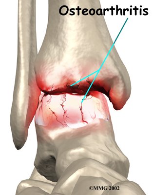 Eventually, it may be necessary to consider surgery for OA of the ankle. There are several different types of surgery that can be performed to help with your condition. Which procedure is recommended by your surgeon will be determined by many things. These include how much the degeneration in the ankle has progressed, how active you are, how old you are, and what other medical problems you have. Each type of procedure has risks and benefits that should be discussed with your surgeon. The choices for surgery are arthroscopic surgery to clean up the joint, fusion of the joint, or replacing the joint with an artificial ankle joint.