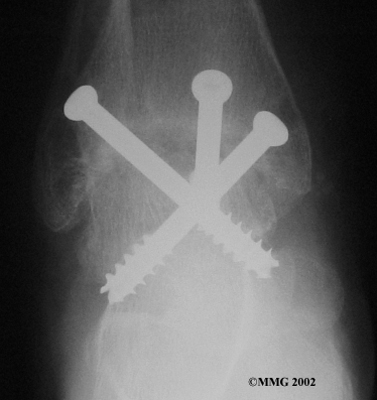The biggest problem with the older artificial ankle designs is that they loosened after a relatively short time and began to cause pain. When using the newer artificial ankle designs, surgeons have tried to solve this problem by actually fusing the tibia and fibula together during the operation and placing screws across the two bones. This has dramatically increased the success rate for the artificial ankle replacements done today. Many surgeons are now beginning to use the artificial ankle for post-traumatic arthritis instead of doing a fusion. Patients are able to keep the motion in the ankle and avoid some of the problems associated with the ankle fusion.