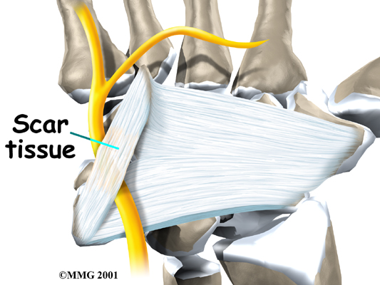 Upon releasing the ligament, the surgeon sutures just the skin together and leaves the loose ends of the ligament separated. The loose ends are left apart to keep pressure off the ulnar nerve. Eventually, the gap between the two ends of the ligament fills in with . This surgery can usually be done as an outpatient procedure, meaning you can leave the hospital the same day.