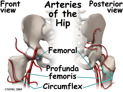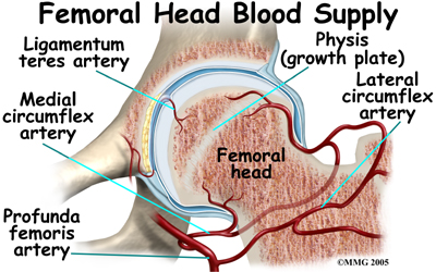 Whatever the true cause of ischemia (lack of blood to the area), the result is bone death (called necrosis) of the femoral head. Without a normal blood supply, the bone loses its strength and shape. The loss of bone density and softening of the head result in a femoral head that is misshaped. With the hip supporting the weight of the body, tiny microfractures in the soft, necrotic bone fail to heal. This is another reason why normal wear and tear results in a deformity.