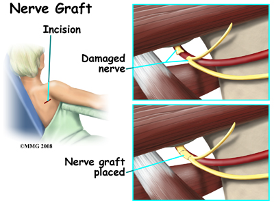 Occasionally, after high-energy trauma, or during surgery, the axillary nerve will be over-stretched, or even cut. This type of injury is called neurotomesis. The axillary nerve may need to be repaired. The injured portion is replaced with another nerve. This is called a nerve graft.