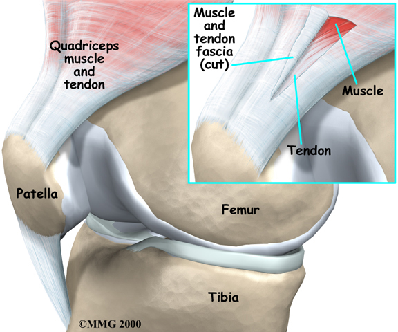Patellar and quadriceps tendons are located near the knees. Patellar tendonitis refers to inflammation of the tendon that connects the patella (kneecap) to the shinbone. Quadriceps tendonitis occurs when inflammation develops in the quadriceps tendon, which is located directly above the patella where it connects the thigh muscles to the top of the patella. Problems in the knee tendons mostly occur in active individuals who regularly engage in running or jumping. Patellar tendonitis is also called jumper's knee.