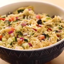 When the weather is hot, side dishes are best served at room temperature or even cold. This delicious orzo salad balances cool, crisp cucumber with tangy olives and fresh tomatoes to provide the perfect light lunch or side to any dinner.