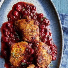 Indulge your taste buds with this aromatic, rich-feeling main course without sacrificing your waistline. Tart cranberries add tons of antioxidants and become mellow and sweet after cooking them with balsamic vinegar. Using bone-in chick thighs makes for the perfect protein to stay moist and tender in this healthy, cozy meal.