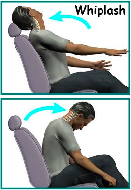 Whiplash occurs when the neck is rapidly jerked back and forth such as in a car collision or a blindside hit in football or slipping on ice. This causes trauma to the portion of the spine located in the neck, which is called the cervical spine.