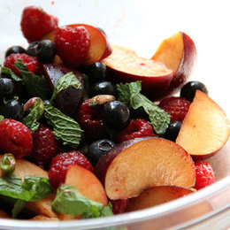 This recipe has several vitamin-rich ingredients such as red plums, raspberries, blueberries, and orange juice. It also contains antioxidant-rich ingredients such as cinnamon, mint, and pistachios. This is a simple dessert that is loaded with vitamin C and additional nutrients that are rejuvenating and refreshing. Try this tasty treat today.