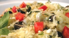 This recipe combines spaghetti squash, onion, garlic, tomato, black olives, basil, and feta cheese to create a nutritious alternative to traditional spaghetti. It is a low calorie option that is full of nutrients, vitamins, and antioxidants.