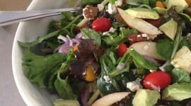 This nutritious salad combines spinach, dried cranberries, chopped walnuts, crumbled blue cheese, tomatoes, avocado, and red onion with raspberry jam, red wine vinegar, walnut oil and salt and pepper. This tasty salad is packed with vitamins and nutrients, and can be made in just 15 minutes!
