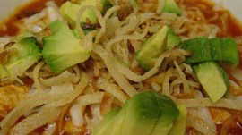 This hearty soup combines chicken breast with an array of ingredients including olive oil, onion, garlic, crushed tomatoes, whole corn kernels, white hominy, green chili peppers, black beans, avocado, green onions, chili powder, oregano, cilantro, and Monterey Jack cheese. This soup is sure to please and is packed with fiber and protein, as well as a variety of vitamins and nutrients.