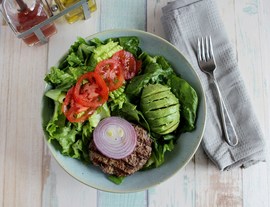 This delicious entrée has tasty ingredients such as lean ground beef, red onion, tomatoes, avocado, balsamic vinegar, and garlic. Not only is this meal filling, it is a powerhouse of minerals, vitamins, and antioxidants. Try this low-carb burger bowl today.