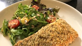 This recipe combines salmon fillets with bread crumbs, butter, Dijon mustard, and salt and pepper to create a healthy dinner option that can be paired with a salad or vegetable medley. This dish is packed with protein and can be ready in less than 30 minutes.