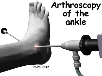 The arthroscope can help the doctor remove these loose bodies and bone spurs and smooth the cartilage surfaces of the ankle joint. The arthroscope is a special TV camera that is inserted through small incisions (one-quarter of an inch) around the ankle. Small surgical tools can also be inserted through these incisions to work in the ankle joint.