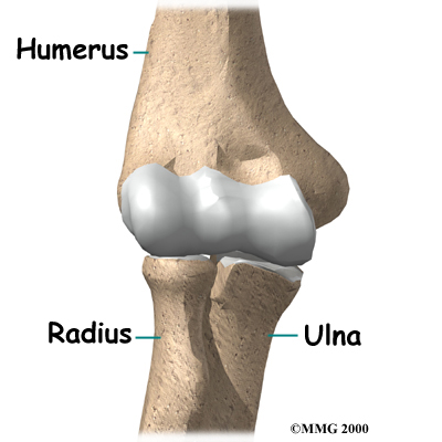 As the joint heals, the tendon or fascia forms a cushion of thick, tough tissue between the bones. The tissue pads the ends of the bones and reduces pain while still allowing the elbow to move.