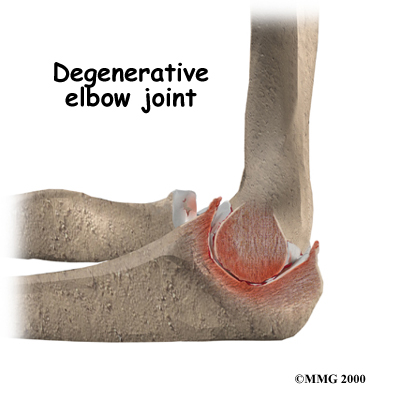 However, an elbow injury can lead to problems later in life. The injury changes the way the joint works just enough to cause extra wear and tear to the surfaces of the joint. Over time, the joint degenerates, causing pain and difficulty with daily activities. This condition is called osteoarthritis, degenerative arthritis, or posttraumatic arthritis.