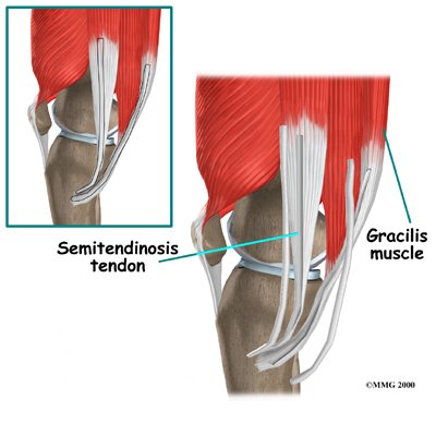 An incision is also made along the inside edge of the knee, just over where the hamstring tendons attach to the tibia. Working through this incision, the surgeon takes out the semitendinosus and gracilis tendons. Some surgeons prefer to use only the semitendinosus tendon and do not disrupt the gracilis tendon.