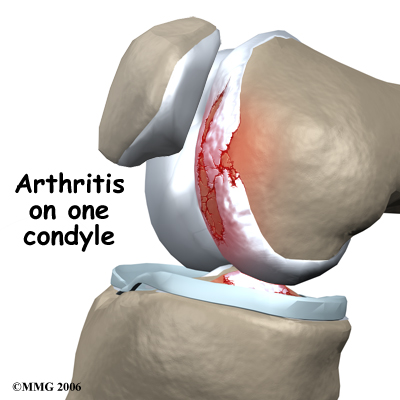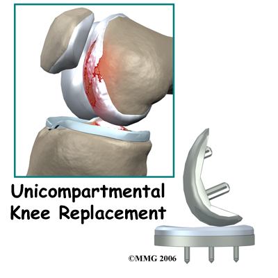 A painful knee can severely affect your ability to lead a full, active life. Over the last 25 years, major advancements in artificial knee replacement have improved the outcome of the surgery greatly. One of the more recent advances in knee replacement surgery is the unicompartmental knee replacement (also known as a unicondylar knee replacement). This type of knee replacement is less invasive than a full knee replacement. The operation is designed to replace only the portions of the joint that are most damaged by arthritis. This can have significant advantages, especially in younger patients who may need to have a second artificial knee replacement as the first one begins to wear out. Removing less bone during the initial operation makes it much easier to perform a revision artificial knee replacement later in life.