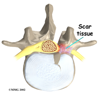 Any surgery that is done near the spinal canal can potentially cause injury to the spinal cord or spinal nerves. Injury can occur from bumping or cutting the nerve tissue with a surgical instrument, from swelling around the nerve, or from the formation of scar tissue. An injury to the spinal cord or spinal nerves can cause muscle weakness and a loss of sensation to the areas supplied by the nerve.