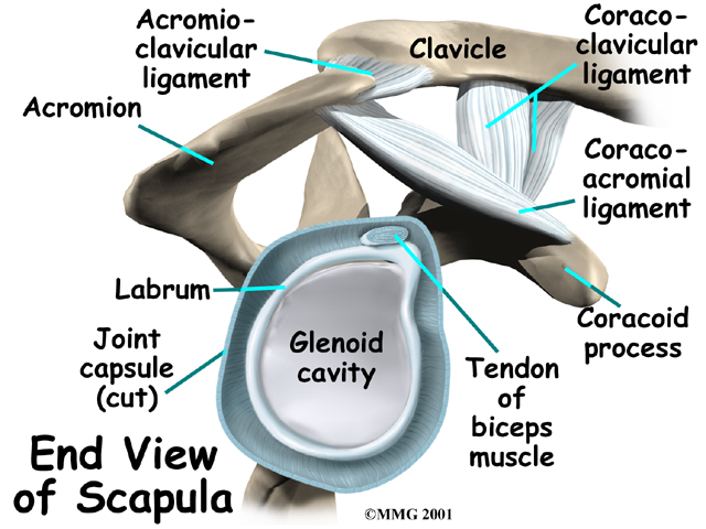 Tendons attach muscles to bones. Muscles move bones by pulling on the tendons. The rotator cuff helps raise and rotate the arm. As the arm is raised, the rotator cuff also keeps the humerus tightly in the socket. A part of the scapula, called the glenoid, makes up the socket of the shoulder. The glenoid is very shallow and flat.