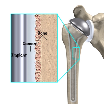 A cemented prosthesis is held in place by a type of epoxy cement that attaches the metal to the bone. An uncemented prosthesis has a fine mesh of holes on the surface. Bone grows into the mesh. Over time, this anchors the prosthesis to the bone.