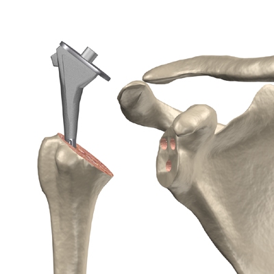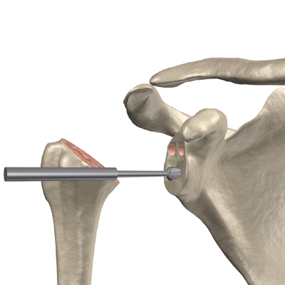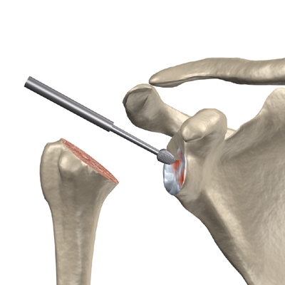 into the bone of the scapula. This is where the stem of the glenoid component is anchored.