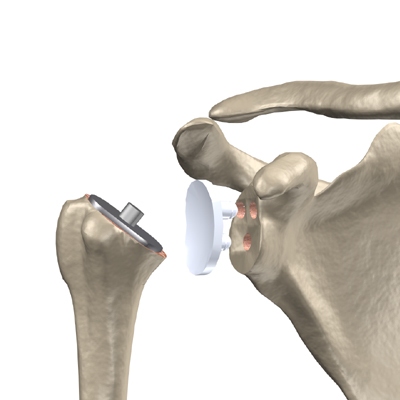 Each prosthesis (artificial joint) is made up of two parts. The humeral component replaces the humeral head, or the ball of the joint. The glenoid component replaces the socket of the shoulder, which is actually part of the scapula.