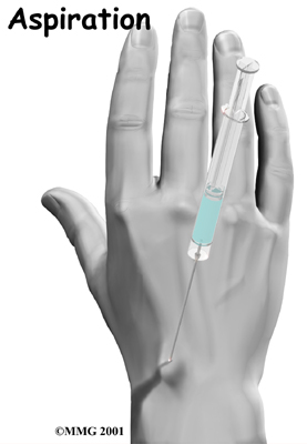 The first is cyst puncture and . (Aspiration means drawing the fluid out with suction.) However, this procedure has less than a 50 percent success rate.