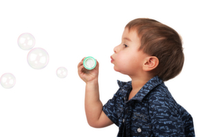 - Place a toe ring on your child’s toe, or blow bubbles to encourage reaching