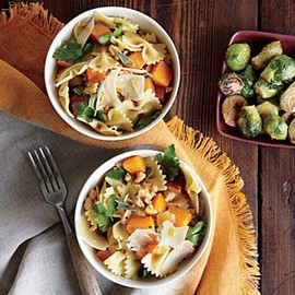 This recipe includes butternut squash, extra-virgin olive oil, walnuts, organic vegetable stock, garlic, parsley, sage, vegetarian Parmesan cheese, and black pepper.